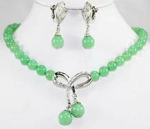 Best fine Lovely Wonderful word green gem Necklace Set Crystal Pendant Earrings gem women's jewelry silv