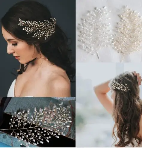 Gold Leaf Hair Jewelry Bridal Pearl Hairbanda Handmade Wedding Hair Accessories Hot Sale Bridal Hai