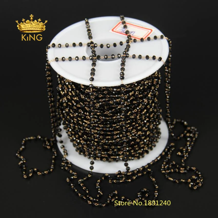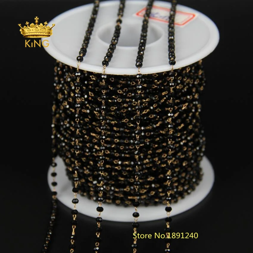 HIGH QUALITY 5Meter 2x3mm Black Glass Rosary ChainFaceted Rondelle bead With Brass ChainsTone Wire Wrapped Neckl