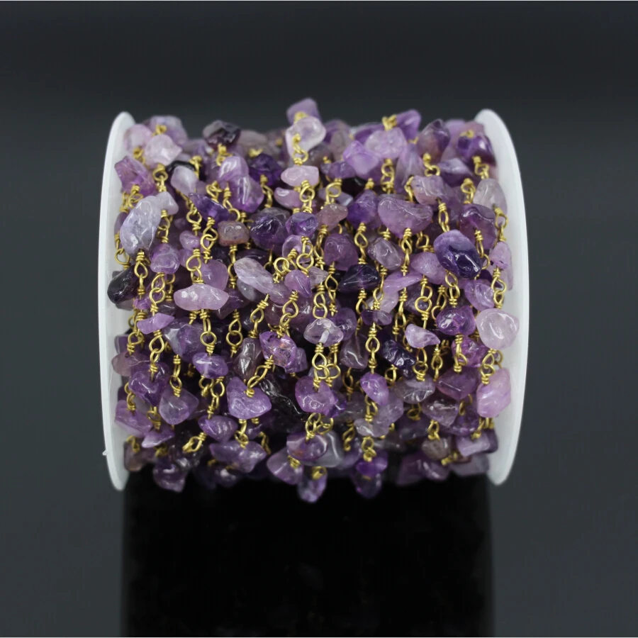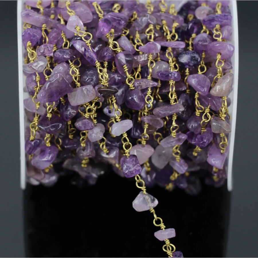 5MeterWholesale Amethyst Beaded Rosary Chainpurple crystal Chip Beads Chains Necklace Fashion DIY J