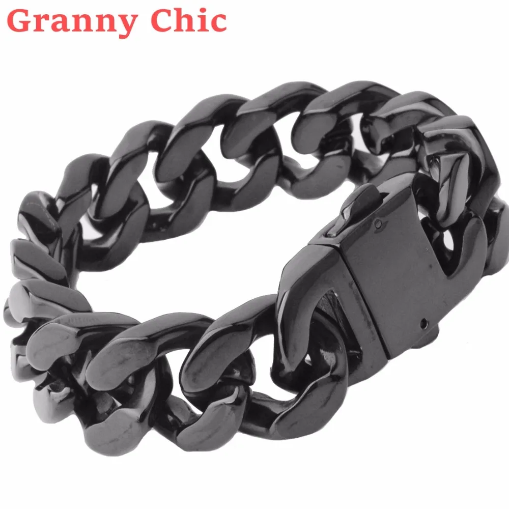 Granny Chic Cool 20mm Polished Black Color Cut Curb Cuban Link 316L Stainless Steel Bracelet Mens C