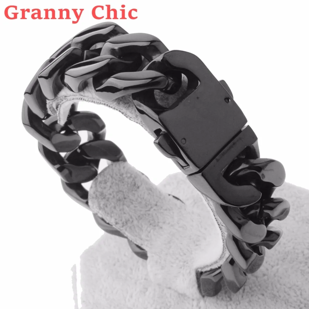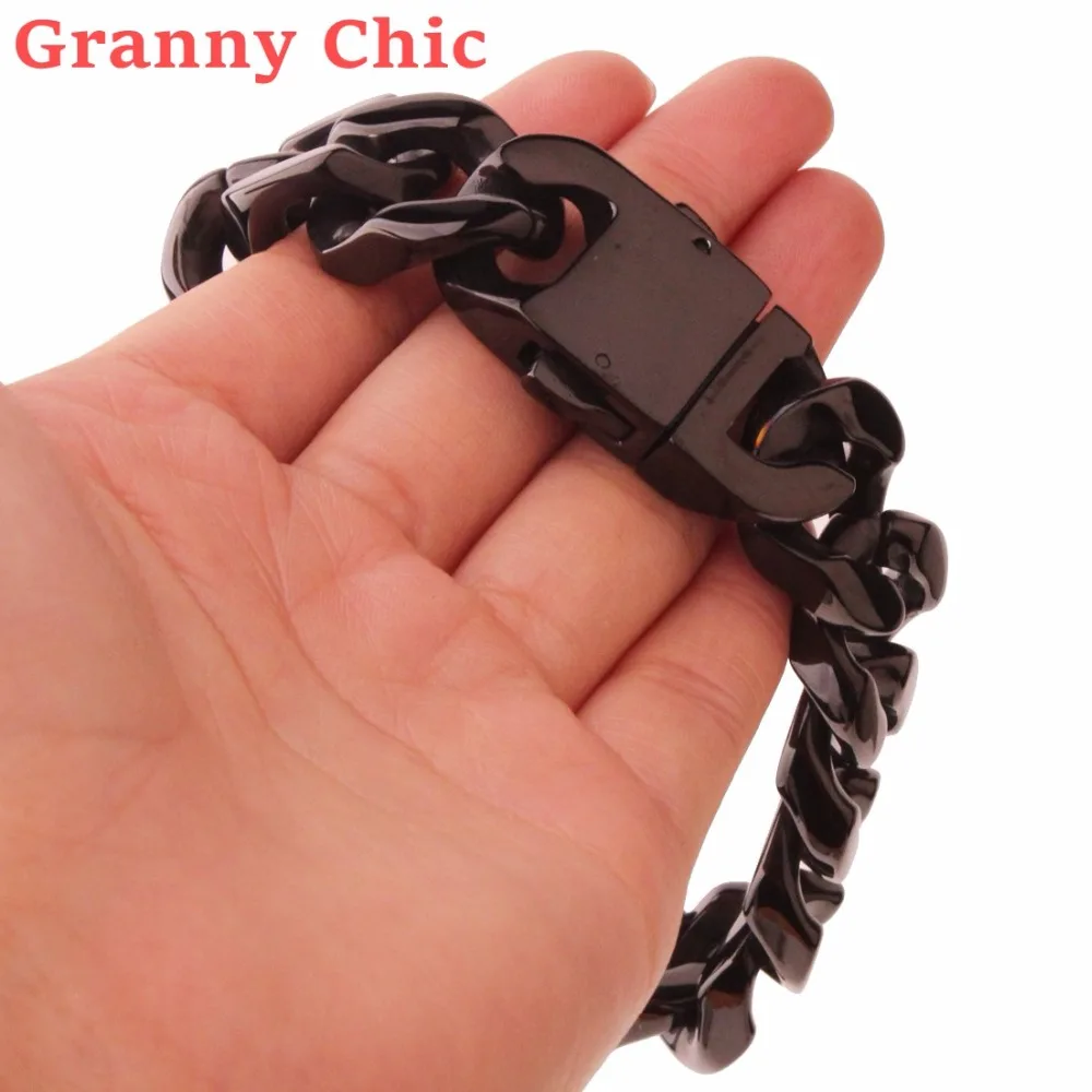 BEST QUALITY Granny Chic Cool 20mm Polished Black Color Cut Curb Cuban Link 316L Stainless Steel Bracelet Mens C
