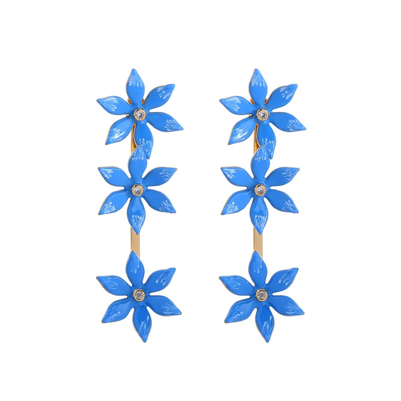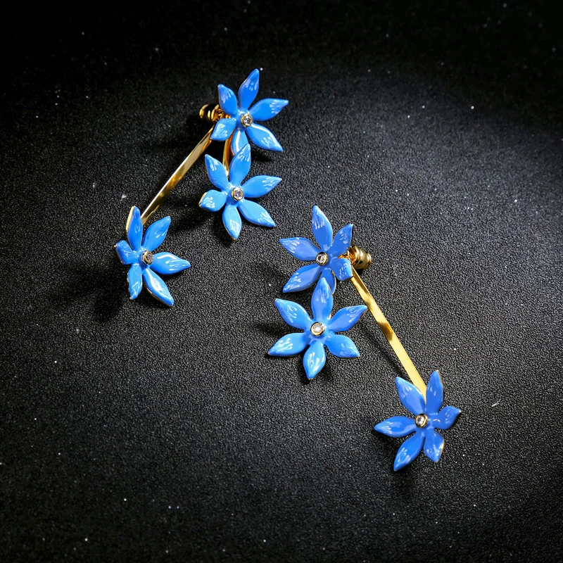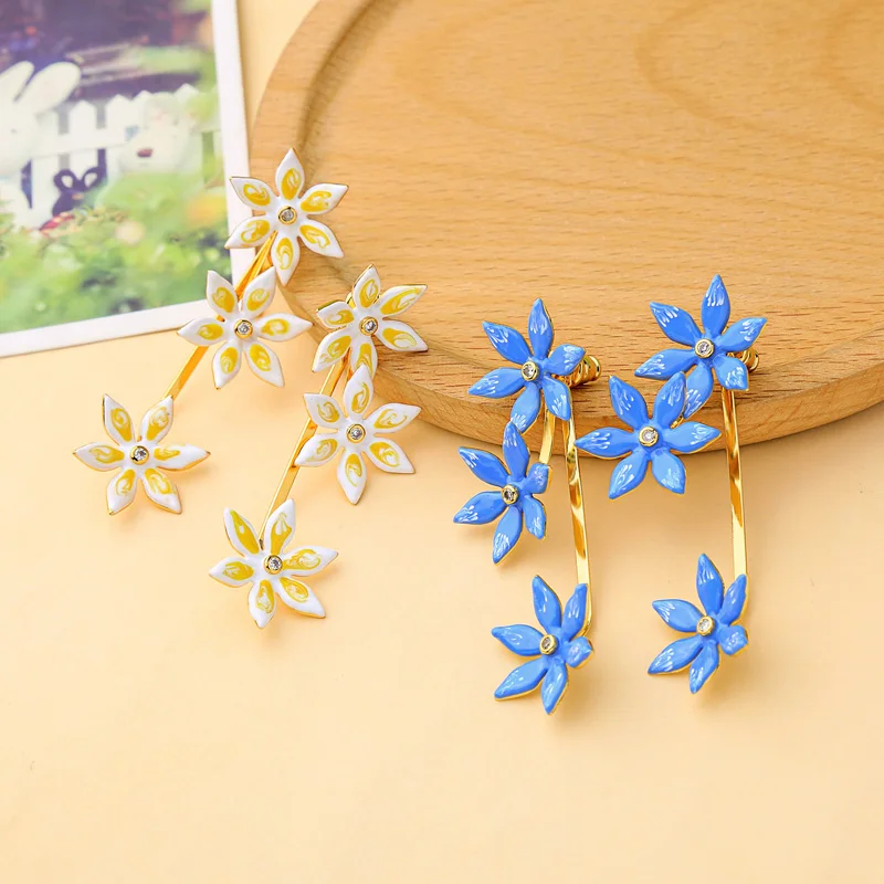 HOT Sale Korean Fashion Jewelry Romantic Blue Yellow Enamel Flower Long Dangle Earrings For Women Wedding Ac