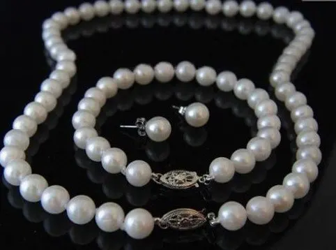 BEST QUALITY Nobility Jewellery 8-9MM white Akoya Cultured Pearl Necklace bracelet earring set