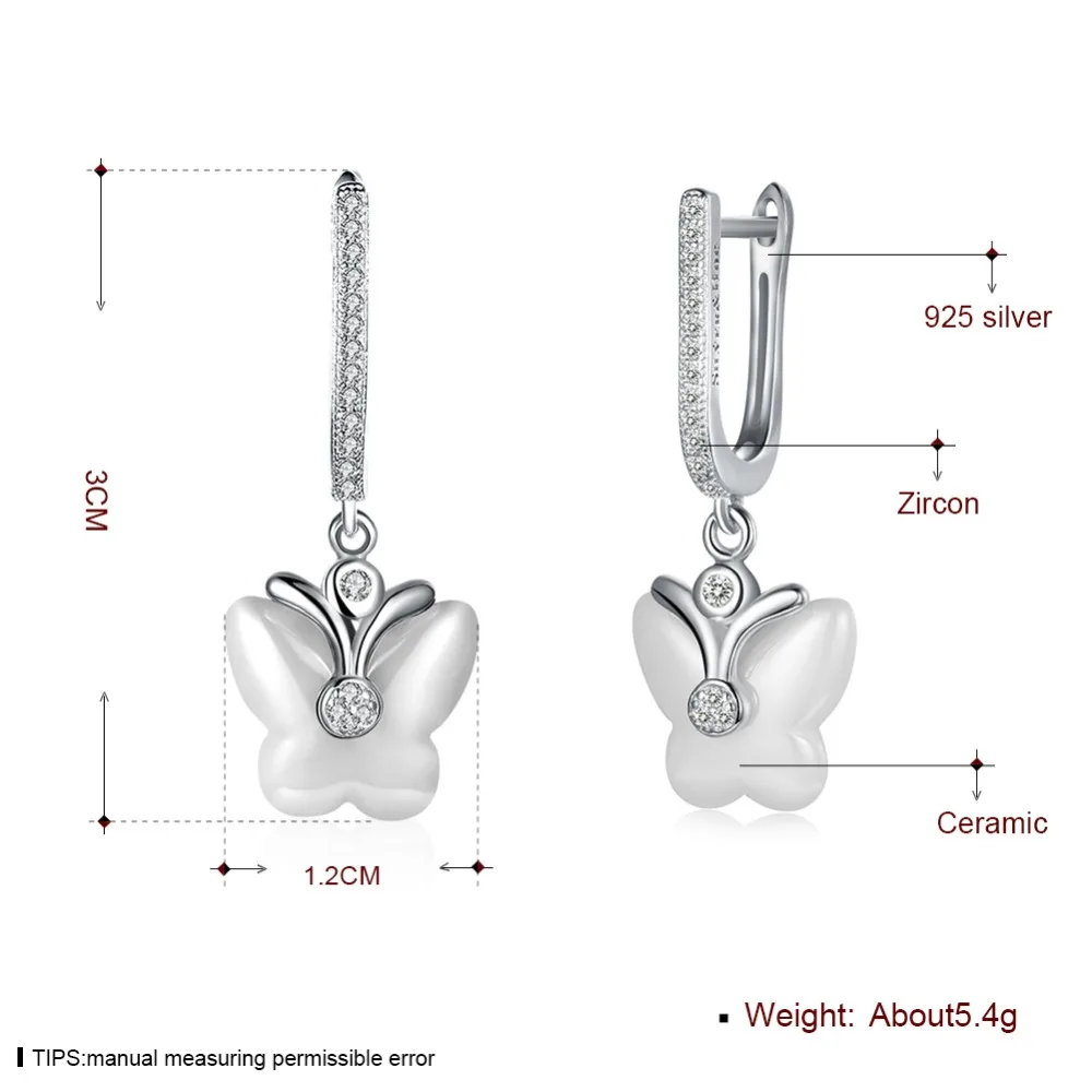 Best Quality OUSNOW brand luxury quality fashion jewelry 100% 925 sterling silver white butterfly ceramic lady e