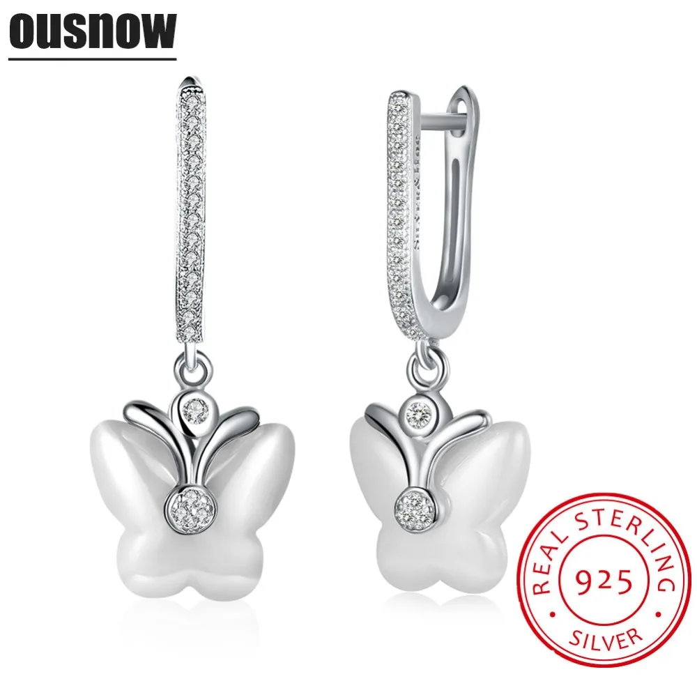 OUSNOW brand luxury quality fashion jewelry 100% 925 sterling silver white butterfly ceramic lady e