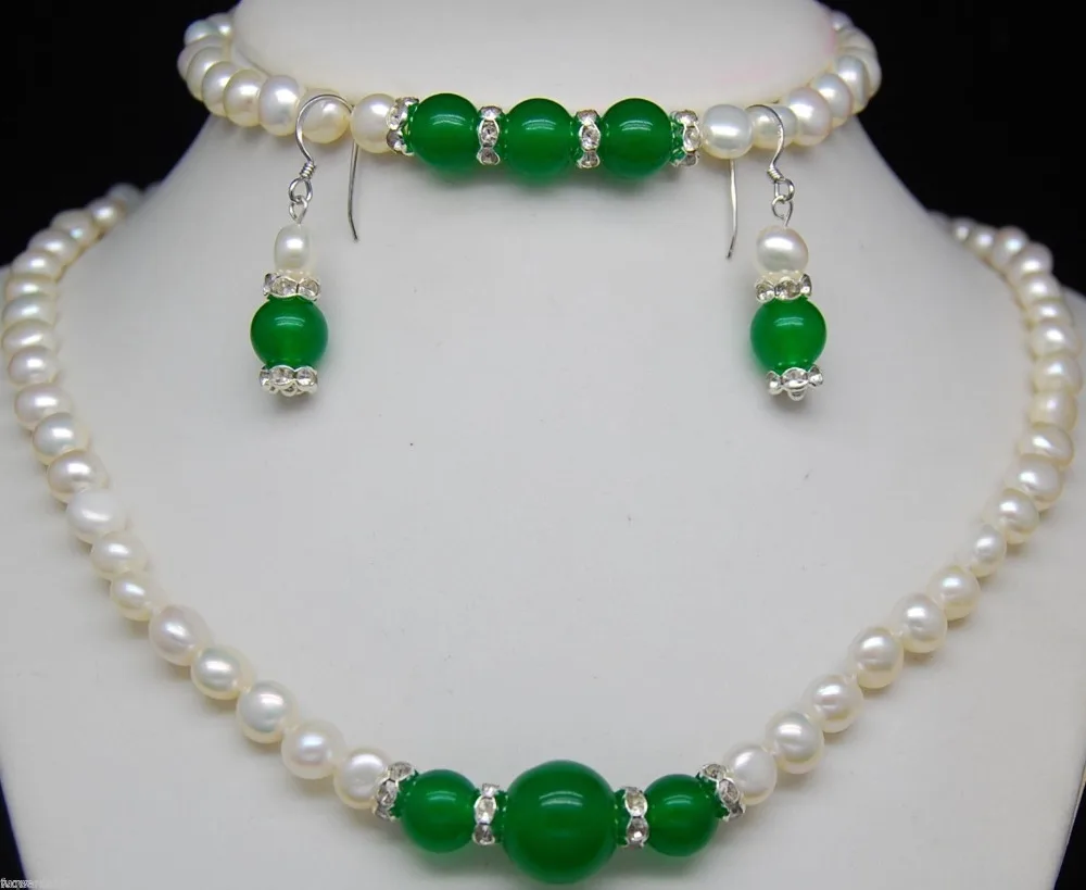 Best 925 silver Lovely Women's Hot sale new Style >>>>Natural 7-8mm White Pearl & Green gem Beads Neckla