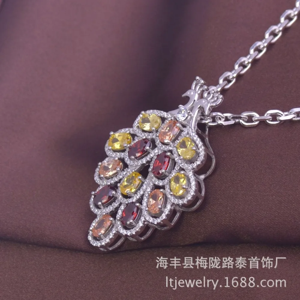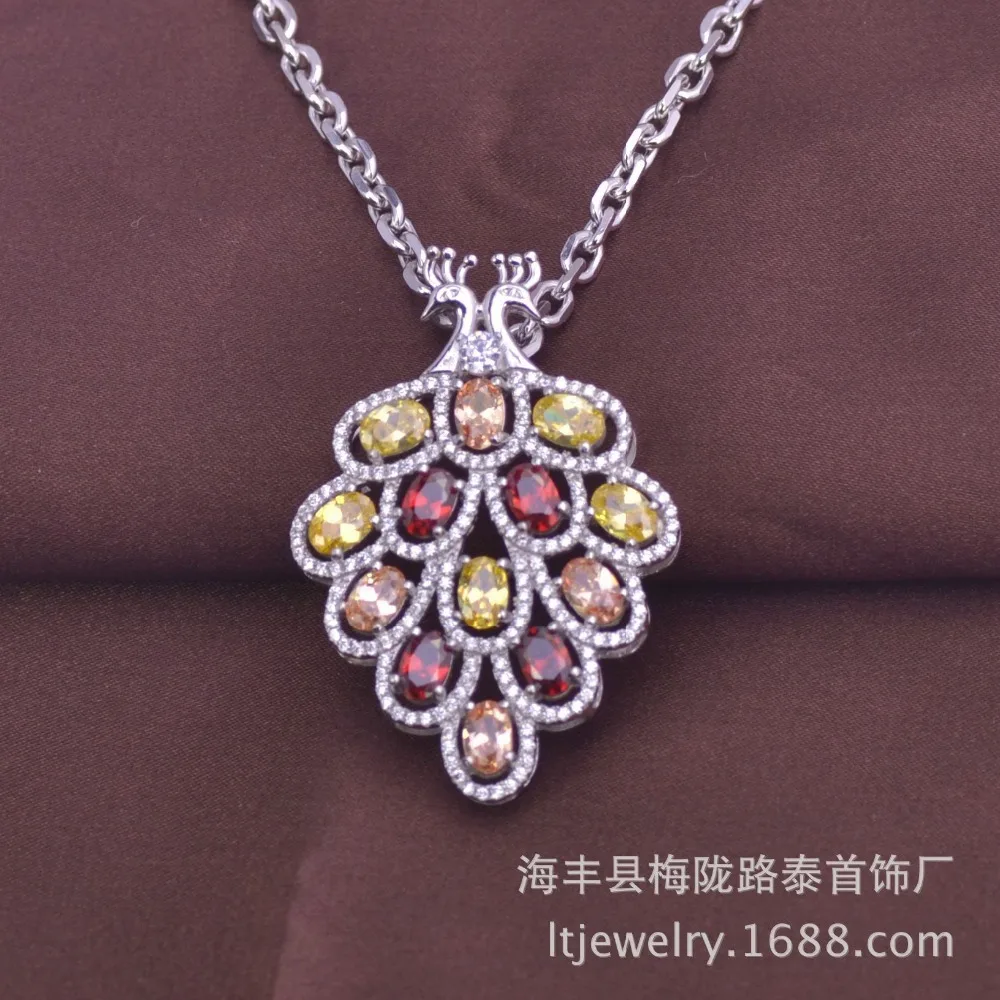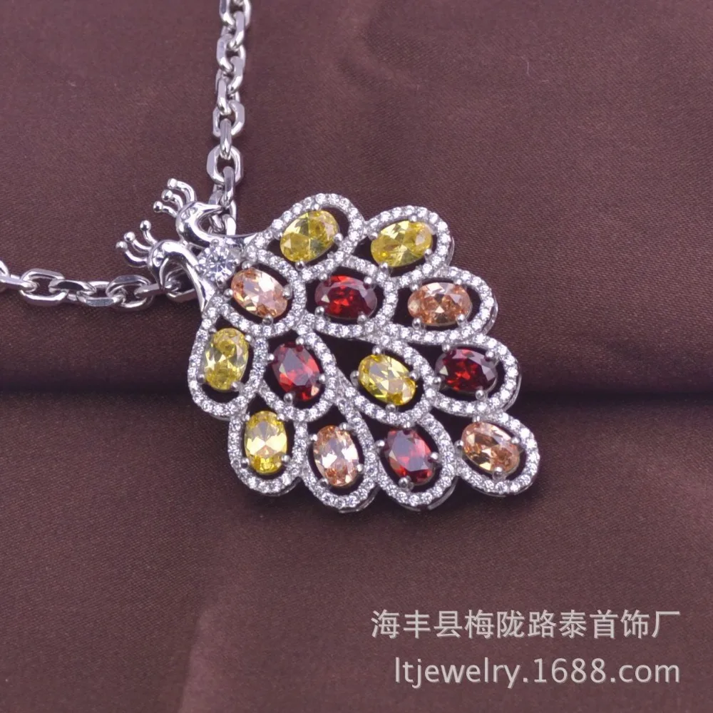 Best Seller LSP935 peacock pendant 925 sterling silver colorful zircon stone necklace jewelry free shipping