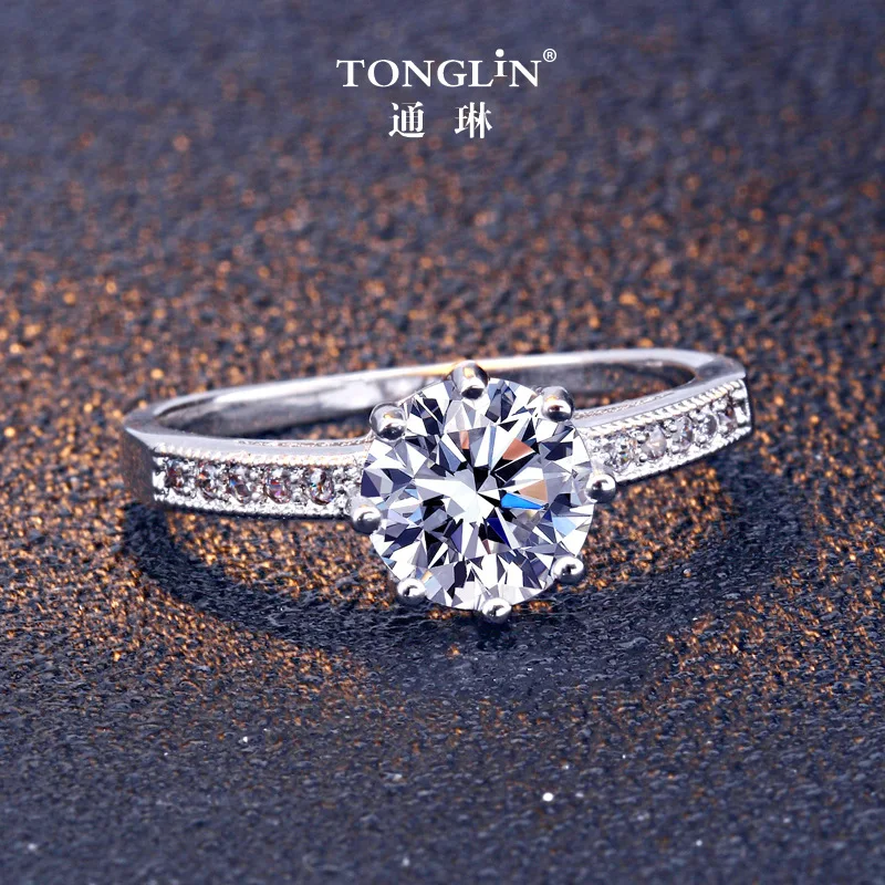 TONGLiN Luxury Female Round Finger Rings For Women Lover Wedding Jewelry Party 6 ClawsTrendy Ring W