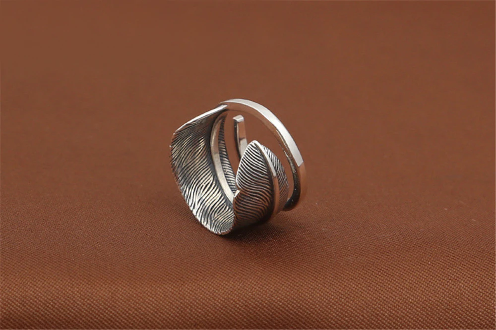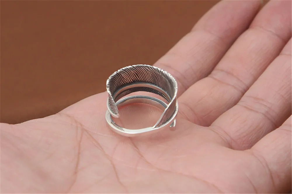 Genuine 100% 925 Sterling Silver Vintage Retro Punk Indian Eagle Feather Ring For Women Men Fashion
