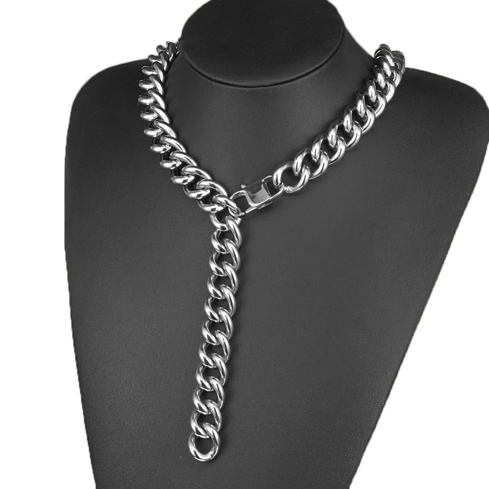 ORIGINAL Width 15mm Delicate polishing Jewelry High Quality Silver Stainless Steel Curb Cuban Chain Men's Te