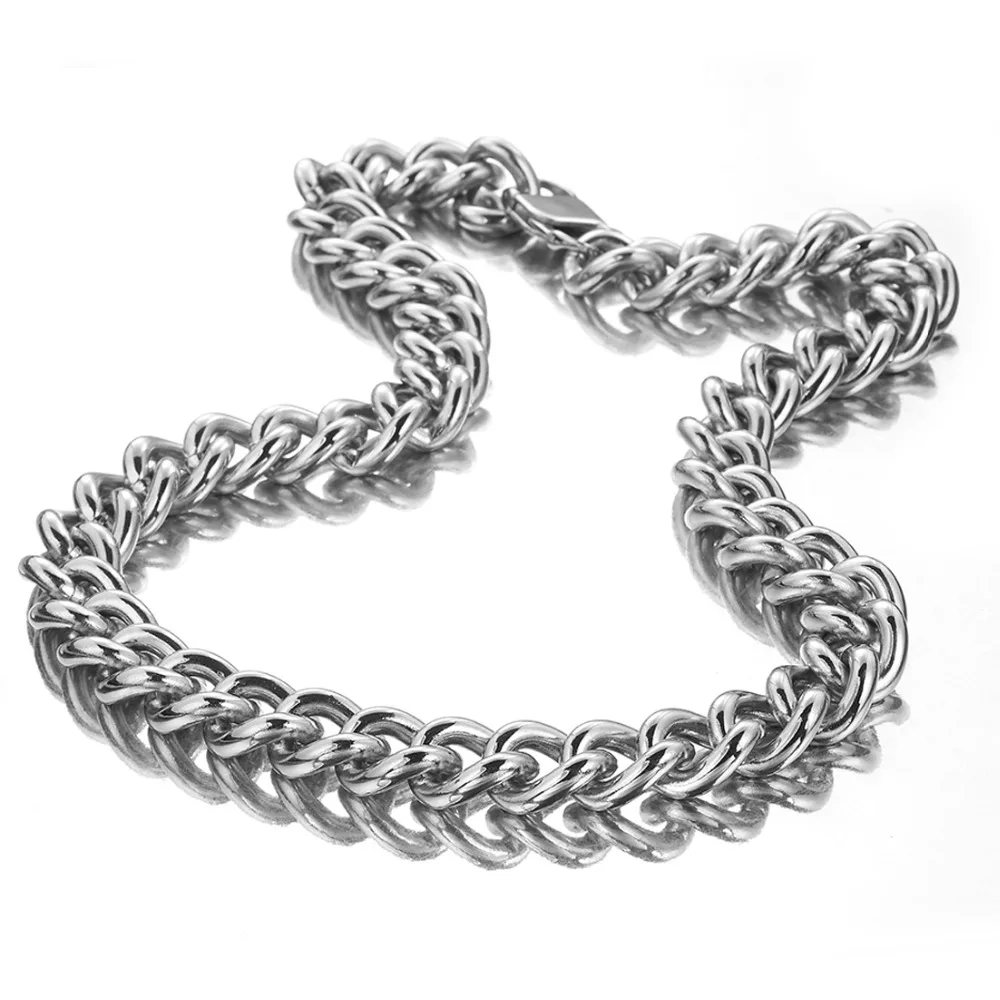 BEST QUALITY Width 15mm Delicate polishing Jewelry High Quality Silver Stainless Steel Curb Cuban Chain Men's Te