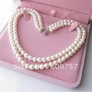 Best Freshwater Cultured Pearl Necklaces Fine 2Rows 7-8mm White Akoya Pearl Necklace women gift silver-j