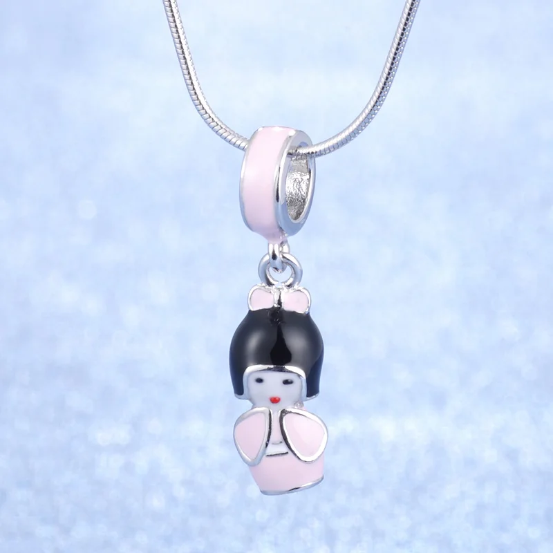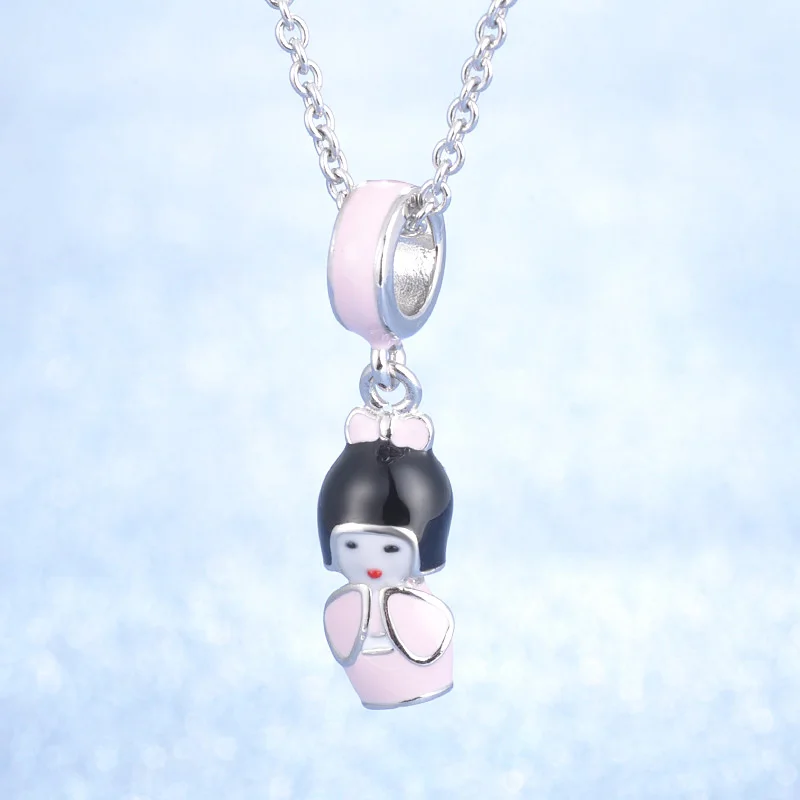 Best Quality Lovely The Japanese kimono Girl Pink Color New Arrival Jewelry S925 Sterling Silver Snake/Cross Cha